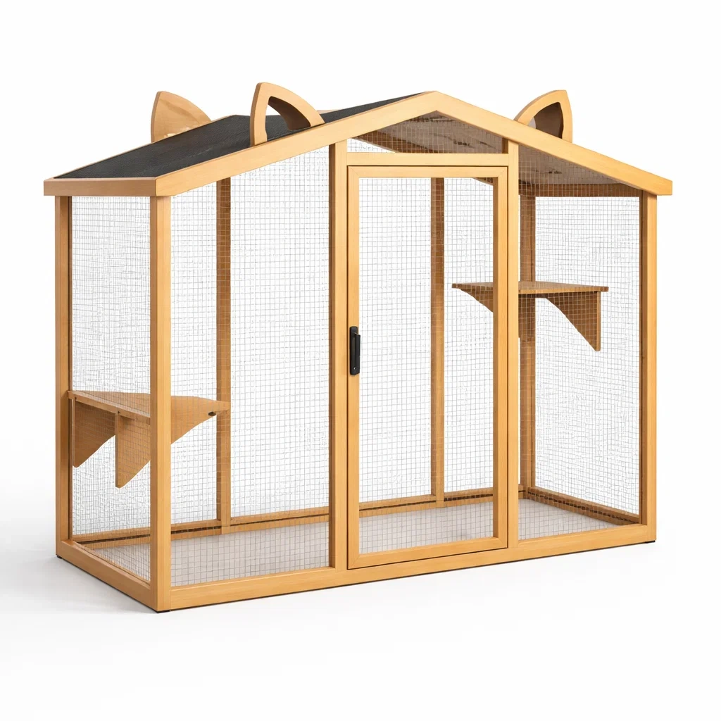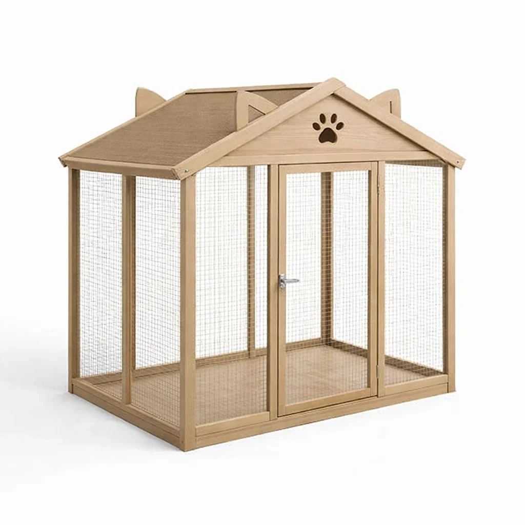 Gabbia per gatti in legno con rete metallica 120x100x80 cm