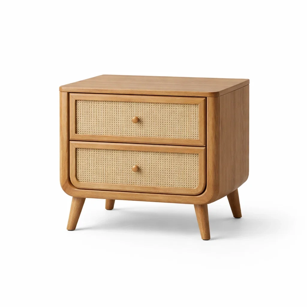 Materiale: Struttura in legno massello, frontali dei cassetti in rattan.