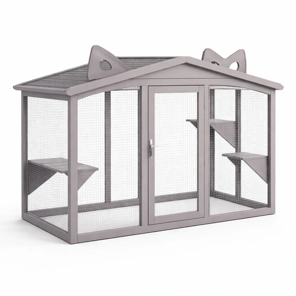 Spazio sicuro per gatti con mensole per arrampicarsi.