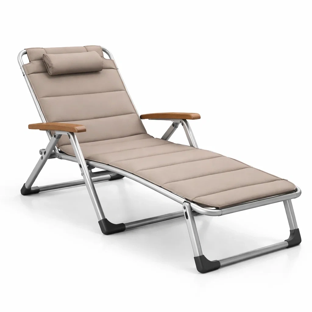 Lettino pieghevole da esterno in alluminio con tessuto beige